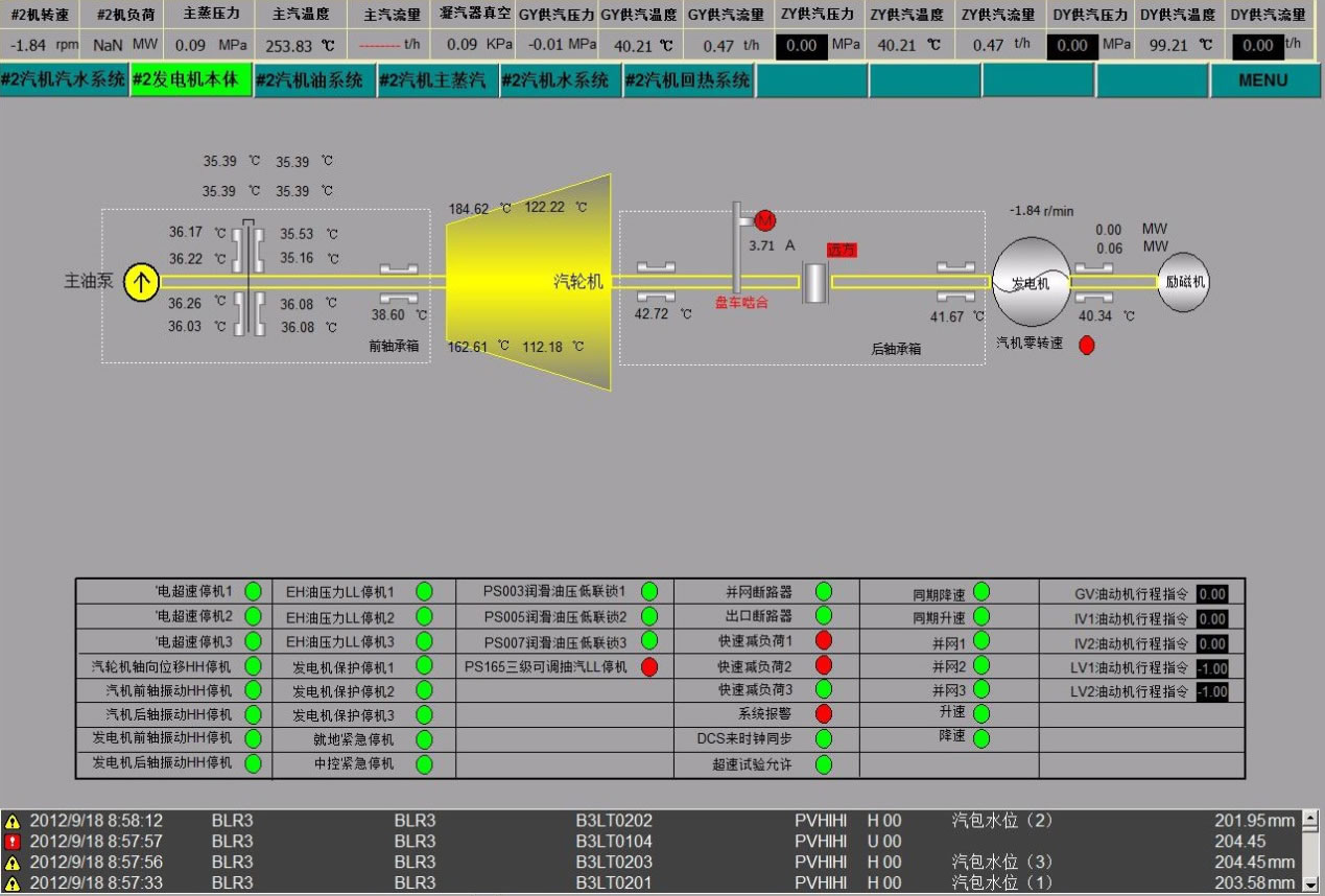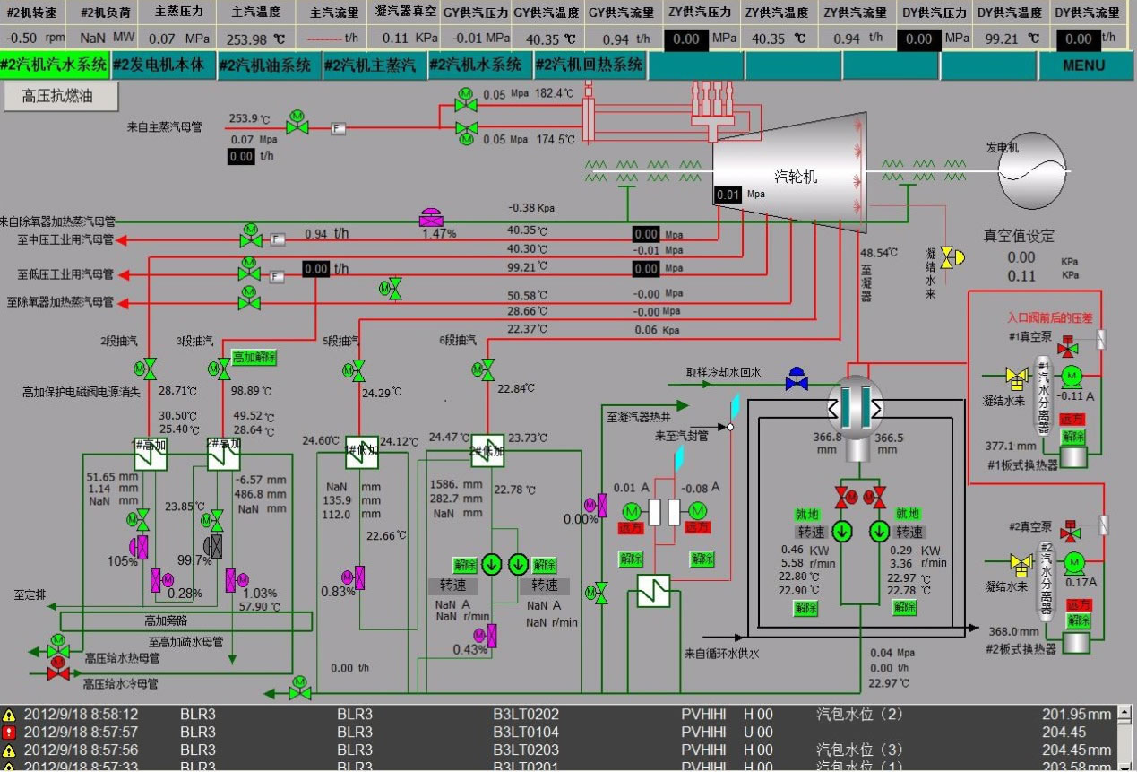通过实时的对汽轮机的各项技术参数进行准确的监控及有效控制。从而保障汽轮机机组的正常启停及并网发电。控制系统具有丰富的图形库,通过组态可将汽轮机的设备图形连同相关的运行参数显示在画面上;除此之外,还能将参数以列表或分组等形式显示出来。综合分析及时发出控制指令:监控系统根据监测到的汽轮机运行数据,按照设定好的控制策略,发出控制指令,调节汽轮机系统设备的运行,从而保证汽轮机高效、可靠、安全、稳定、经济运行,减轻操作人员的劳动强度。